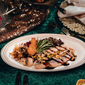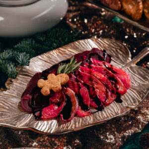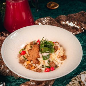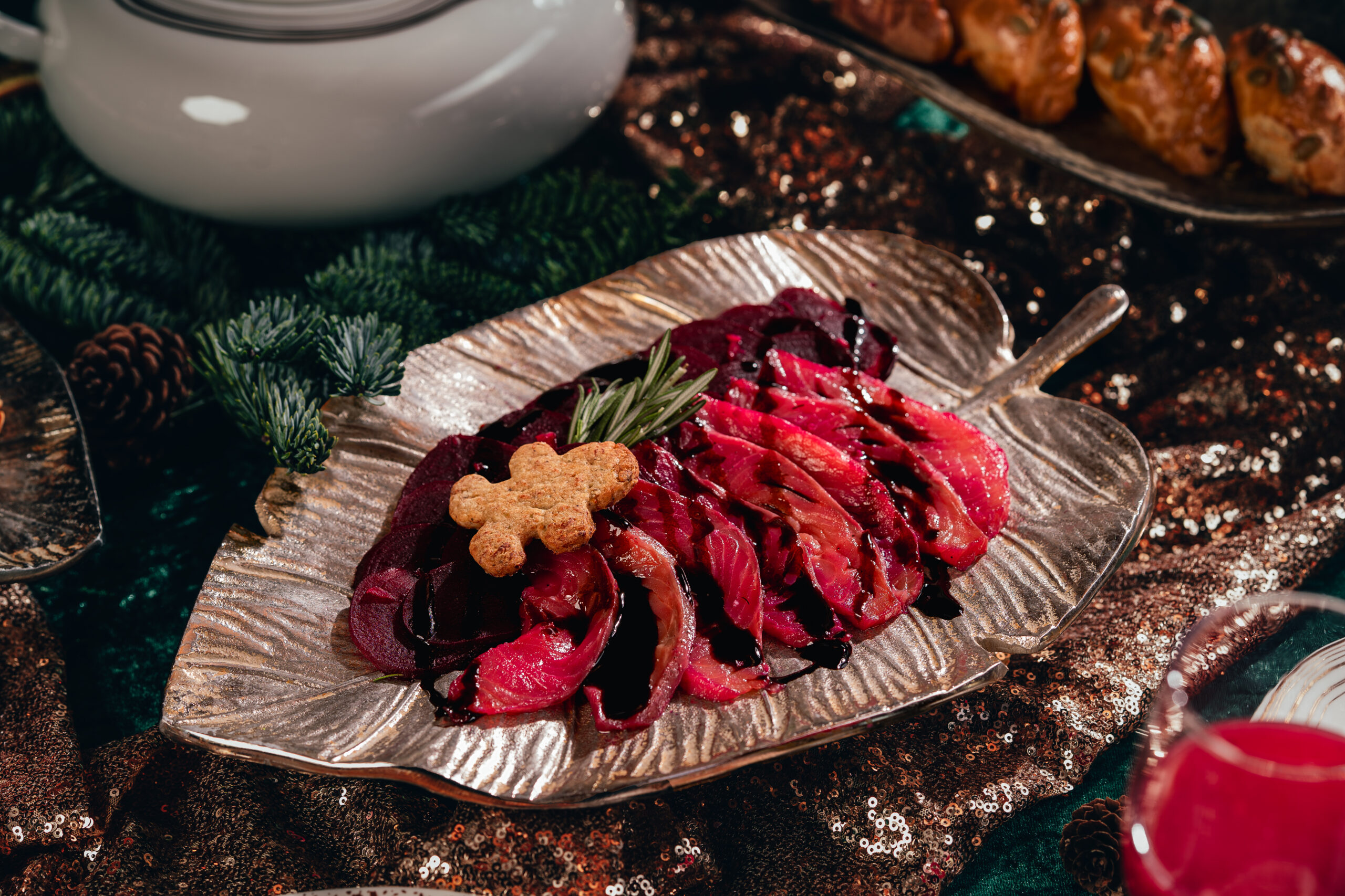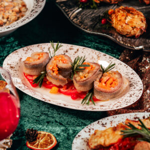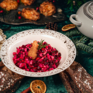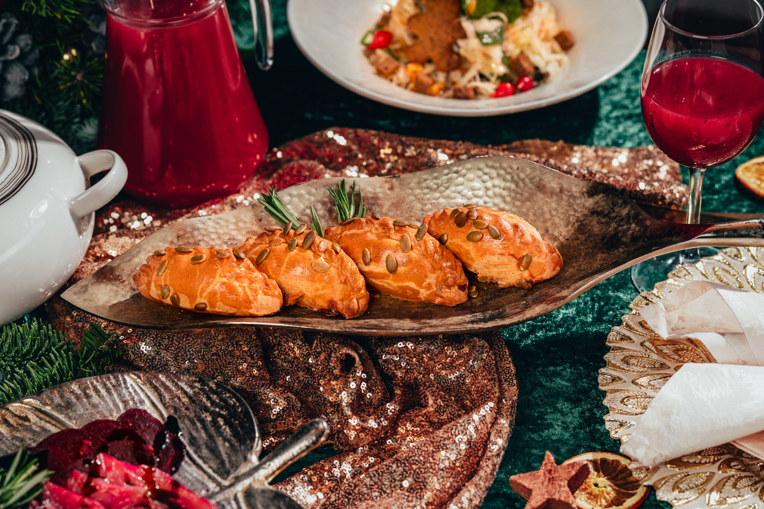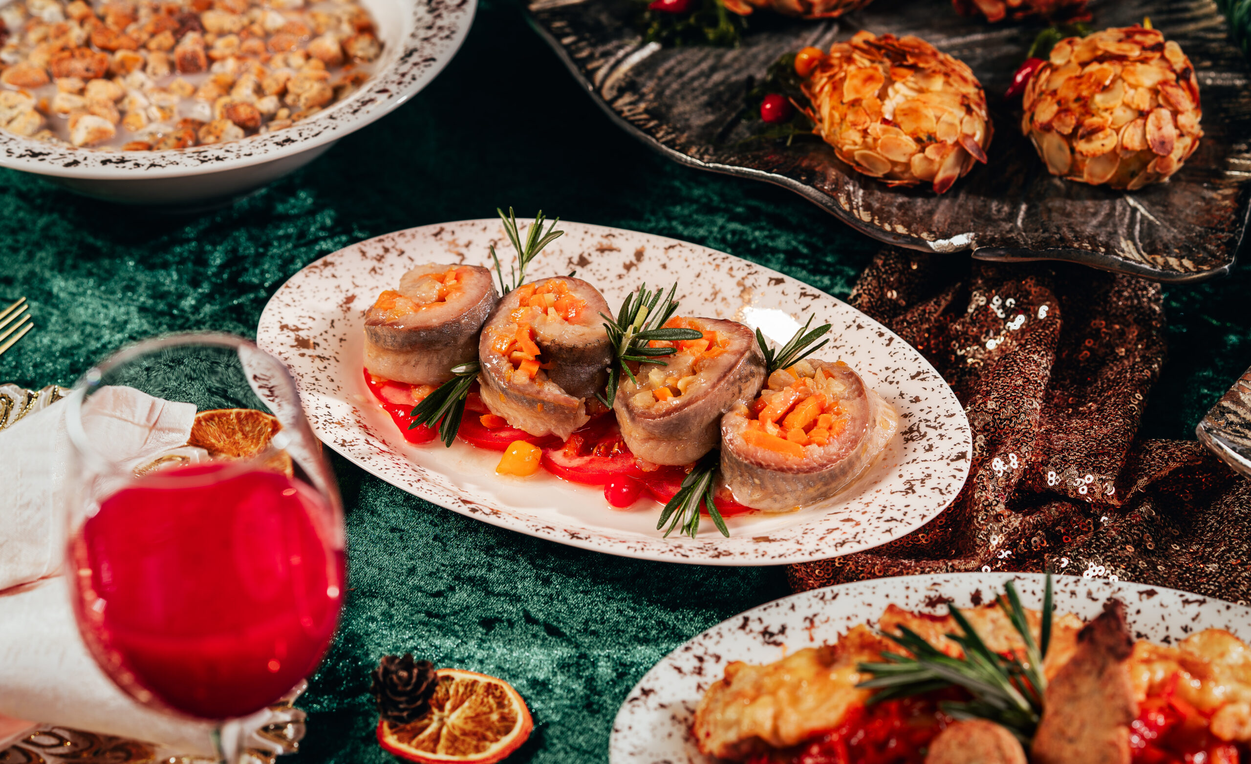Žuvies kotletukai su migdolų plutele ir špinatais (patiekiama su veganiniu majonezo ir žalumynų padažu) NAUJIENA Sūdytų lašišų riekelės su burokėlių „karpačio“ ir balzamiko kremu Kepta žuvis su senoviniu padažu Silkių suktinukai su troškintomis daržovėmis Silkių filė su burokėliais, keptais miško grybais, balzamikų kremu ir kepintomis pistacijomis NAUJIENA Kibinukai su moliūgų ir miško grybų įdaru bei skrudintomis moliūgų sėklomis NAUJIENA Raudona mišrainė Kopūstų salotos su miško grybais, keptais moliūgais, porais, špinatais ir juodos duonos skrebučais Kūčiukai su aguonomis Aguonų pienas Spanguolių kisielius |