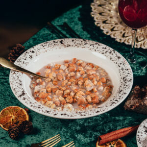 Tradicinė šv. Kūčių vakarienė sudaryta 12 patiekalų, paruošta 2 asmenims.